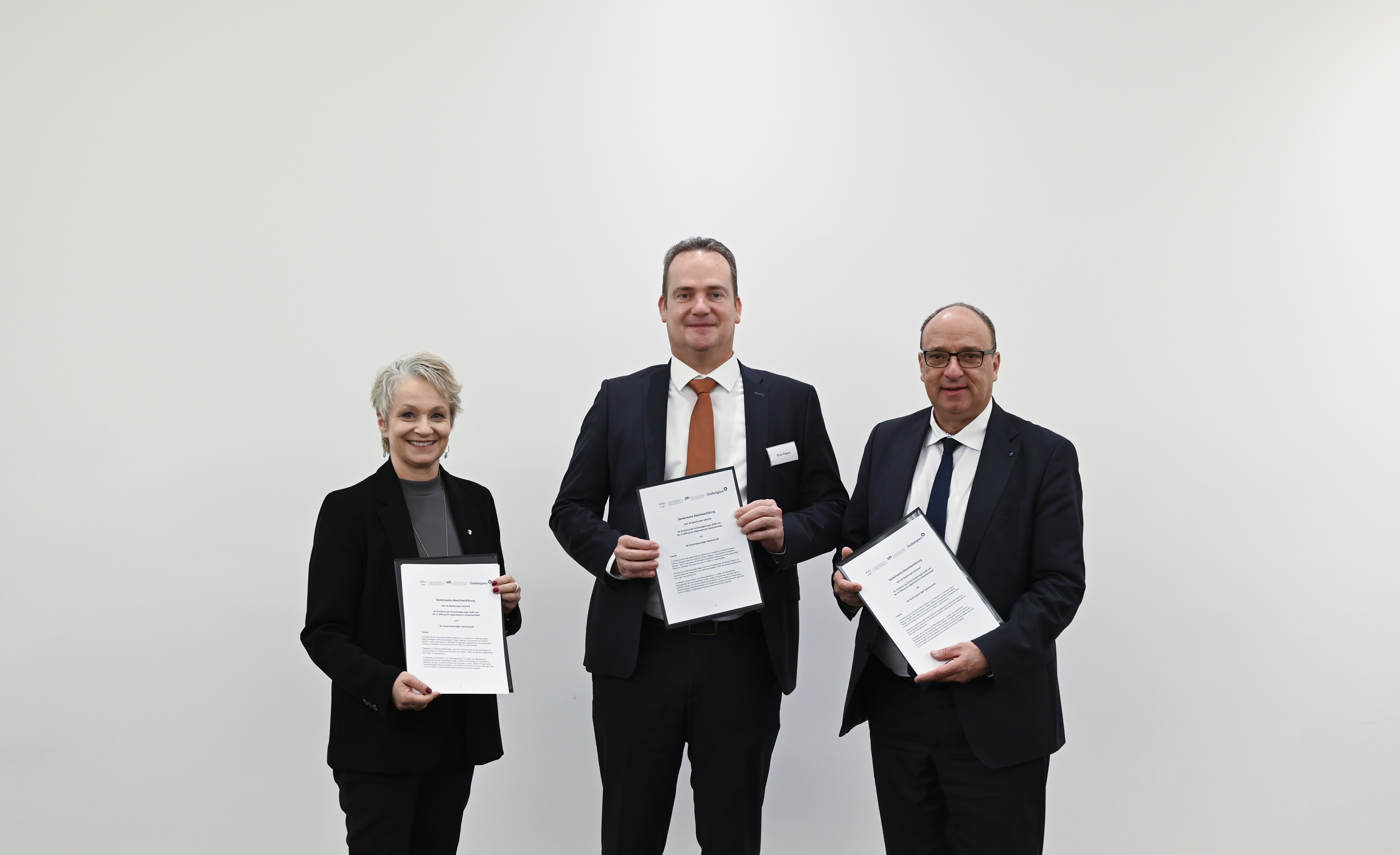 Markus Dieth, Präsident der Konferenz der Kantonsregierungen (KdK), Florence Nater, Präsidentin der ch Stiftung für eidgenössische Zusammenarbeit, und Oliver Paasch, Ministerpräsident der Deutschsprachigen Gemeinschaft Belgiens, unterstrichen bei der Unterzeichnung die zentrale Bedeutung von Föderalismus und Mehrsprachigkeit. Sie bezeichneten diese Werte als tragende Säulen demokratischer Teilhabe, politischen Zusammenhalts und stabiler staatlicher Ordnung. Gleichzeitig betonten sie, wie wichtig der Austausch von Informationen und Erfahrungen sowie eine engere grenzüberschreitende Zusammenarbeit sind.