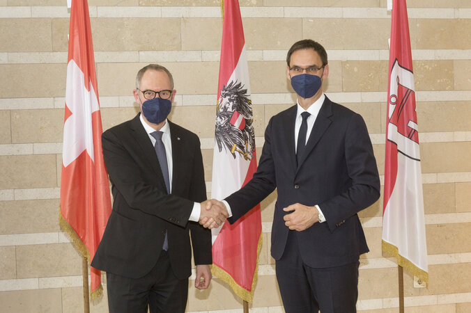 Der Bündner Regierungsrat Christian Rathgeb, Präsident der Konferenz der Kantonsregierungen, und der Landeshauptmann von Vorarlberg Markus Wallner, derzeitiger Vorsitzender der österreichischen Landeshauptleutekonferenz, haben sich am Freitag in Bregenz zu einem Arbeitsgespräch getroffen. Beim Treffen unterhielten sich die Delegationen vor allem über Ukraine-Flüchtlinge, Pandemiebewältigung, Digitalisierung und auch die Beziehungen zur Europäischen Union. Sowohl Regierungsrat Rathgeb als auch Landeshauptmann Wallner betonten die ausgezeichneten Beziehungen sowohl zwischen der Schweiz und Österreich als eben auch zwischen dem Kanton Graubünden und dem Land Vorarlberg.
